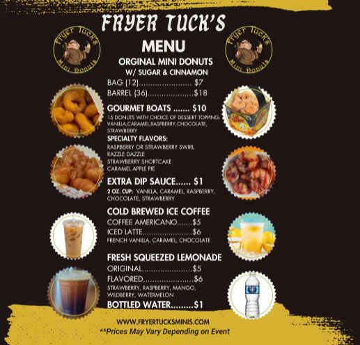 Each menu item is crafted with care and attention to detail. Fryer Tuck’s specializes in mini donuts, with a variety of flavors and toppings designed to delight every guest. Specialty items can be created for your event, from custom flavors to desserts that match the theme of your celebration. Every bite is made to impress, combining quality, creativity, and flavor in a way that makes your event unique and memorable.